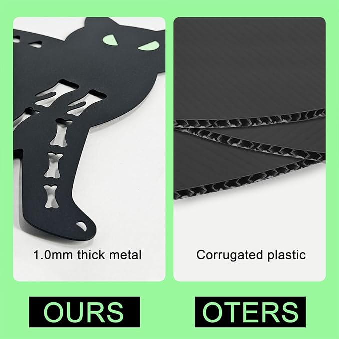 - 【Perfect Metal Yard Decor】These scary black cat silhouette garden signs are designed to withstand outdoor conditions, making them ideal for yard and garden decor.Enhance your Halloween yard decorations with these holloween-themed metal garden ornaments, featuring a captivating black cat design.