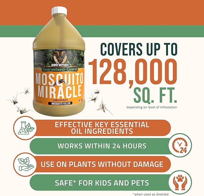 PetraMax Miracle Outdoor Mosquito Spray for Yard Pet Safe Concentrate 1 Gal (Makes up to 32 Gallons) - Mosquito Fogger Liquid Concentrate Tested to Kill - Fogger Machine Spray Lawn Treatment for Pests