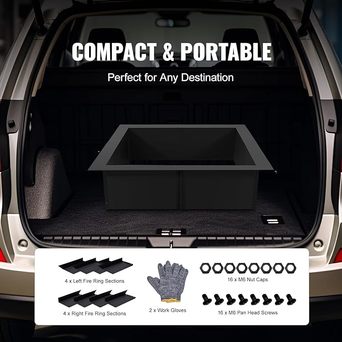 - Large Size: The outer diameter dimensions are 42 x 42 inches (1066.8 x 1066.8 mm), inner diameter dimensions are 36 x 36 inches (914.4 x 914.4 mm), height is 10 inches, and thickness is 0.06 inches (1.5 mm). These dimensions provide ample external space to accommodate more firewood and charcoal, ensuring better airflow to facilitate thorough burning and ignite the campfire.