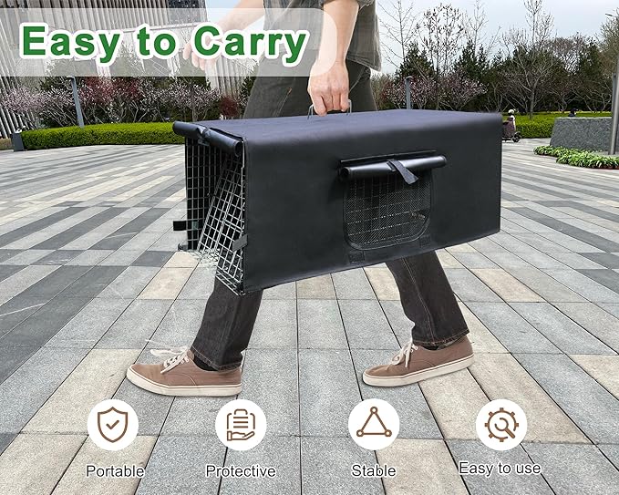 - Weatherproof Trap Cage Cover: 600D Oxford Fabric with PU coating, make the cover U.V resistance and durable, 4 Corner clasp locks keep the cover stay firmly during heavy wind