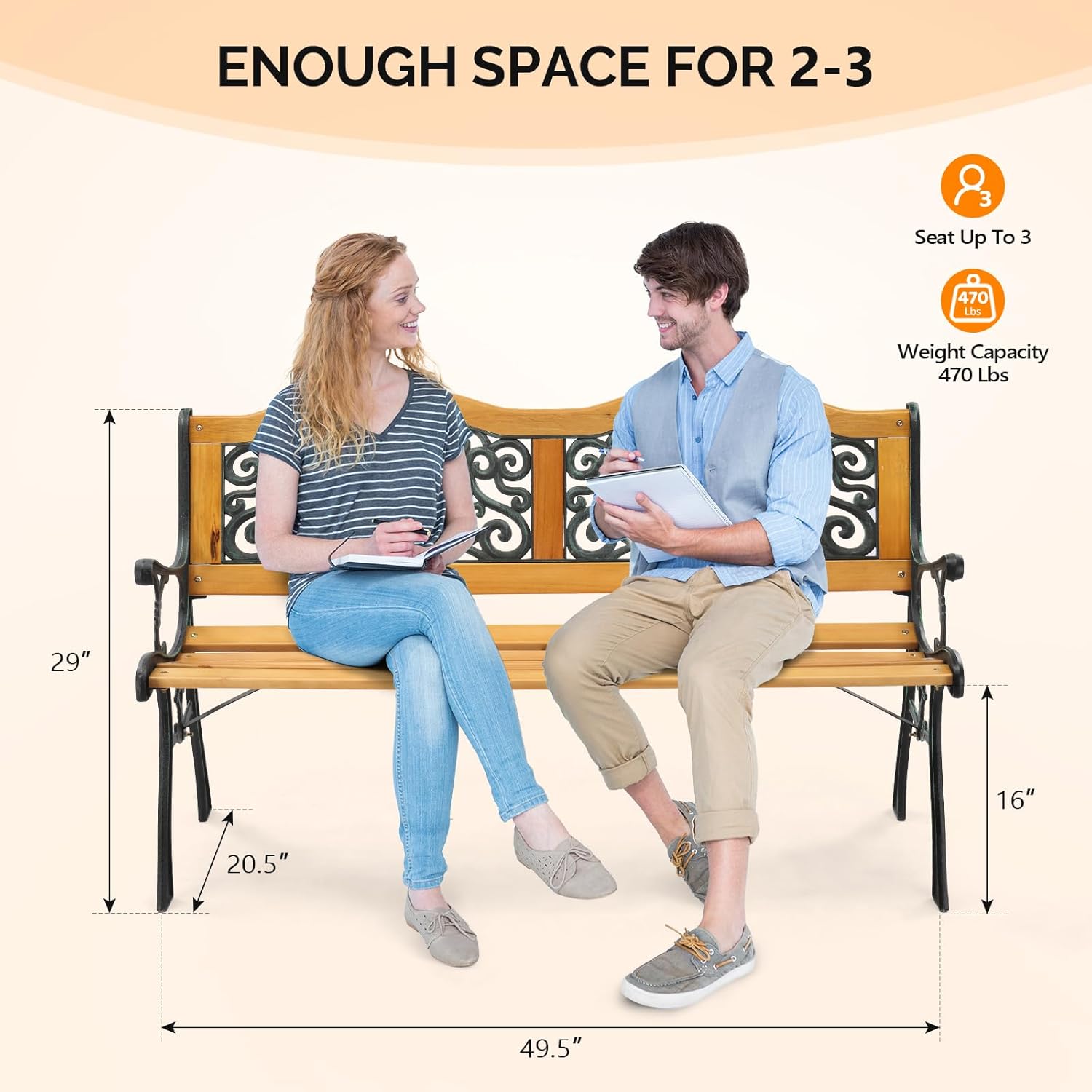 VINGLI Outdoor Bench Metal Garden Bench Front Porch Bench, Wood Patio Bench w/PVC Backrest Cast Iron Love Seat Park Benches (Arched Back)