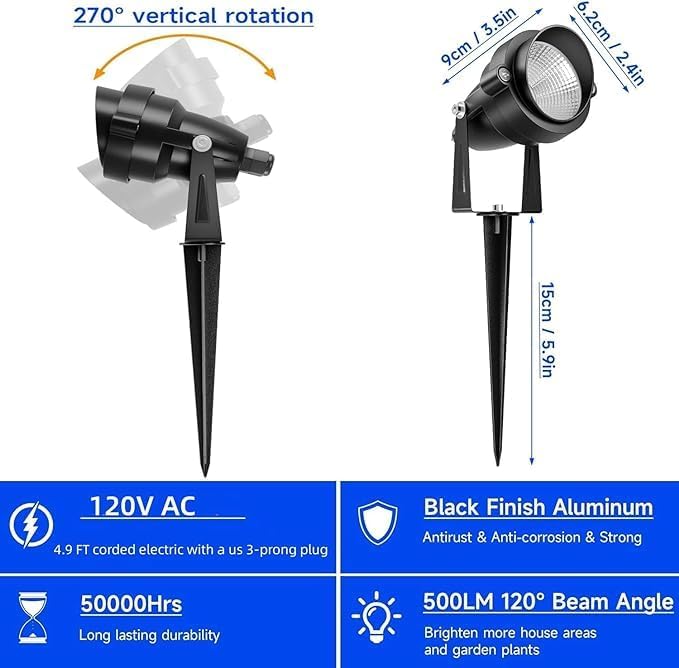 - [ IP65 Waterproof and Resistant to Dust ] The outdoor yard spot light is produced with professional dust-proof and IP65 waterproof technology. It is suitable for outdoor landscape lighting. Please do not set this light underwater.
