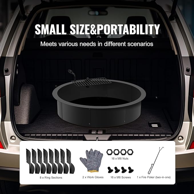 VEVOR Fire Pit Ring, Fire Pit Insert with Barbecue Fire Ring, 40-in Outer/36-In Inner Diameter, 8.5in Height, Carbon Steel Liner DIY Campfire Ring Above/In-Ground, for Outdoor Camping, Bonfires
