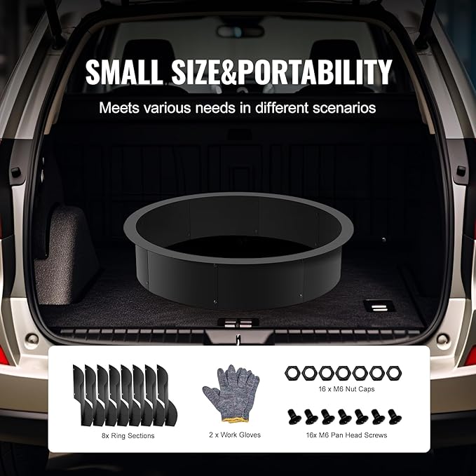 VEVOR Fire Pit Ring, 40-Inch Outer/36-Inch Inner Diameter, 8.5inch Height Fire Pit Insert, Heavy Duty Carbon Steel Liner DIY Campfire Ring Above or In-Ground, for Outdoor Camping, Bonfires