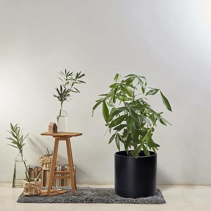D'vine Dev 16 Inch Black Plastic Planter Pots for Plant Pot with Drainage Hole and Seamless Saucers, 74-X-B-5
