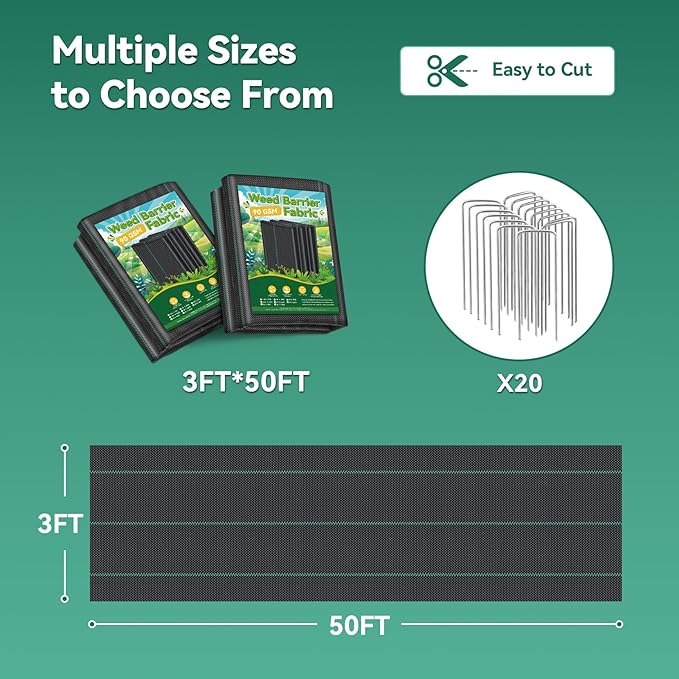 - 【Eco- Approved & Widely Applications】Our polypropylene materia is safe and environmentally friendly, and can be used in organic vegetable gardens. Weed barrier landscape fabric is versatile and can be used in a variety of environments, such as vegetable gardens, flower beds, ground cover, lawns, paved roads, sidewalks, driveways, or around trees and shrubs.