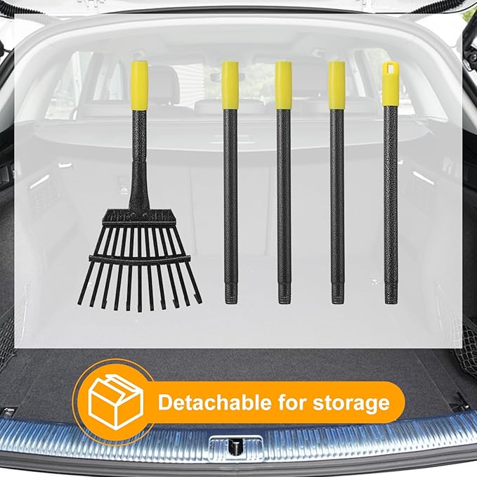 - ADJUSTABLE HANDLE LENGTH: The garden rake has a 1-inch diameter handle that is lightweight and suitable for both children and adults, and the length can be adjusted by adding or subtracting shorter rods to accommodate different people. Each tube section screws into a plastic fitting that is non-slip and protects hands.