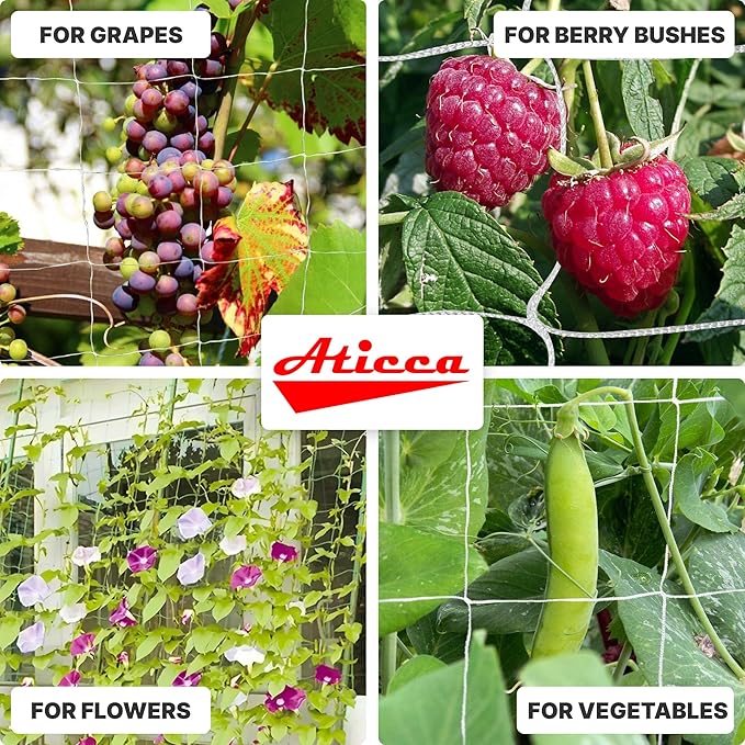 - AMAZING RESULTS โ Enhance plant health by improving sun exposure and providing elevation from the ground. This white netting for garden use offers optimal plant support for gardeners who want reliable results with flower support netting and cucumber netting.