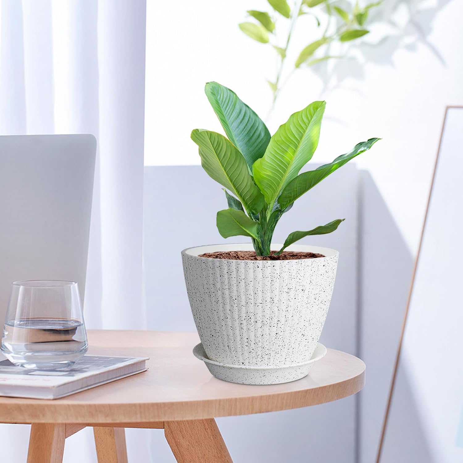 - 【Drainage Holes and Trays】Each plant pot features well-designed drainage holes at the bottom to ensure proper water flow. And comes with matching saucers to catch excess water, keeping your surfaces clean and dry.