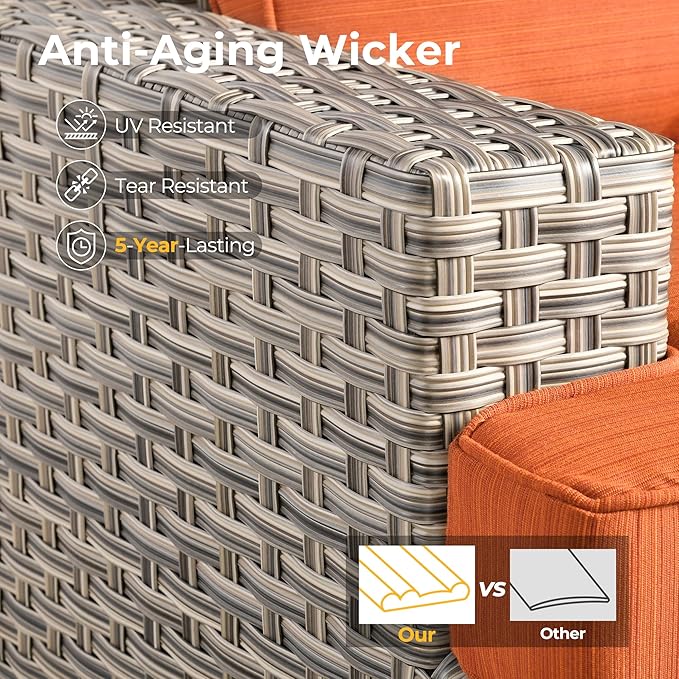 - All Weather & Durable: Selected anti-ageing treated thicken PE wicker rattan for UV resistant, wear resistant and all weatherproof. 3D strengthen and widen design for extended service life,twice service life as others