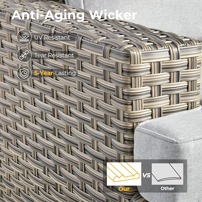 - All Weather & Durable: Selected anti-ageing treated thicken PE wicker rattan for UV resistant, wear resistant and all weatherproof. 3D strengthen and widen design for extended service life,twice service life as others