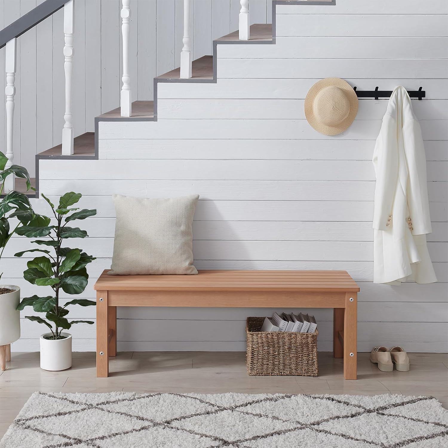 Psilvam Outdoor Bench, Two Person Poly Lumber Porch Bench, Weatherproof Garden Bench That Never Rot and Fade, All-Weather Patio Bench Suit for Garden, Porch, and Park (Teak Color)