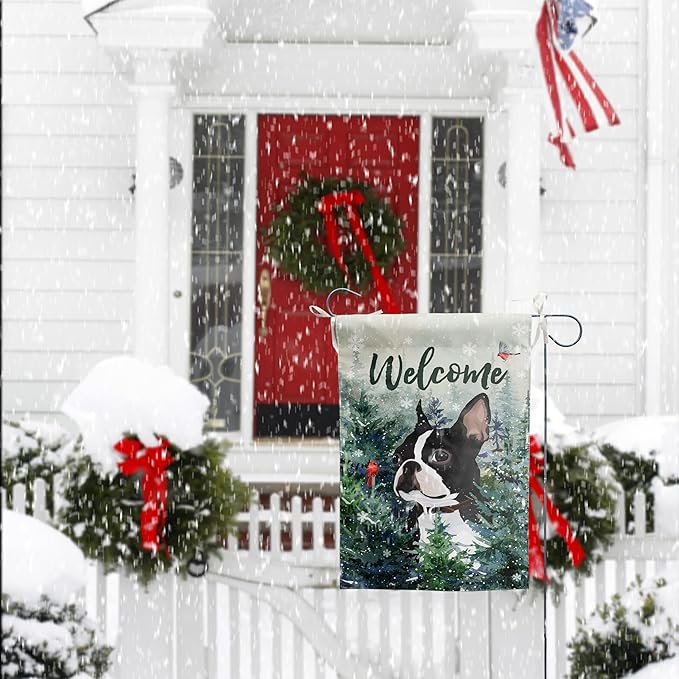 - ✔ 【Boston Terrier Decor】-- Accent your home with this winter boston terrier garden flag 12x18 double sided.