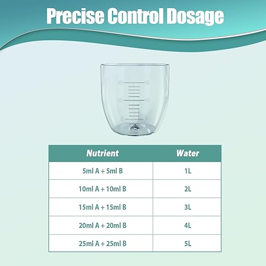 - 【Easy to Use】Just need to mix each nutrient with 100ml water in the correct proportions. And when adding fertilizer, we are equipped with a dispensing cup for convenient metering. Add 5ml A and 5ml B with each 1L water into your hydroponics system