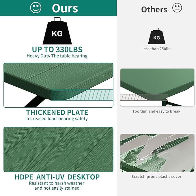 - Robust Steel Structure: Picnic tables for outdoors are engineered with a resilient powder-coated steel frame, ensuring exceptional stability and long-lasting durability. The added anti-tipping and anti-rocking features provide an extra layer of safety and security