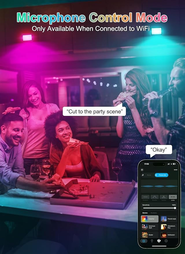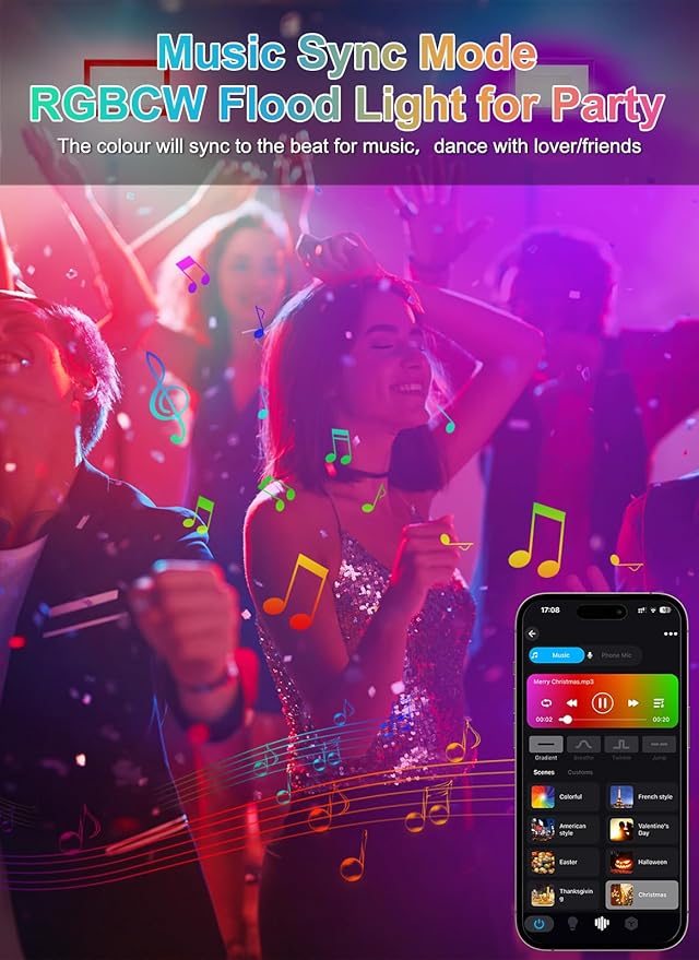 - Music Sync and DIY Dynamic Mode: Using smart chips, color-changing landscape floodlights allow you to choose each lamp's color or mode and then match them to your favorite settings. Whether it's the romantic music of a wedding or the lively dance music of a holiday party, our color-changing landscape light can also change colors in time with the song. I think this will meet your need in many ways. The lights will dance to the music when you activate the music rhythm feature in the mobile app