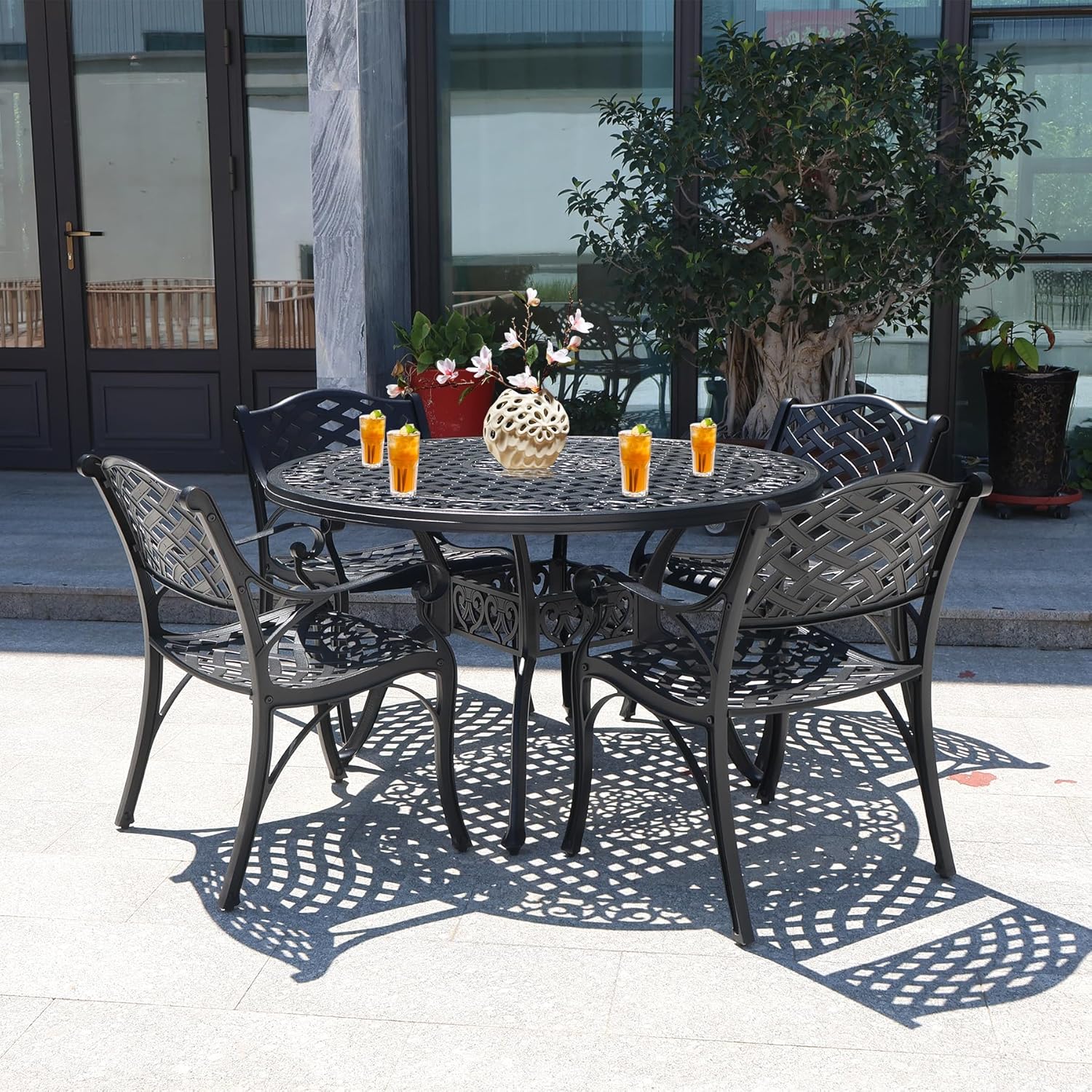Cast Aluminum Patio Table,48" Round Patio Dining Table for 4-6 Person with Umbrella Hole,Metal Patio Table Outdoor Round Bistro Dining Table for Garden,Yard,Black