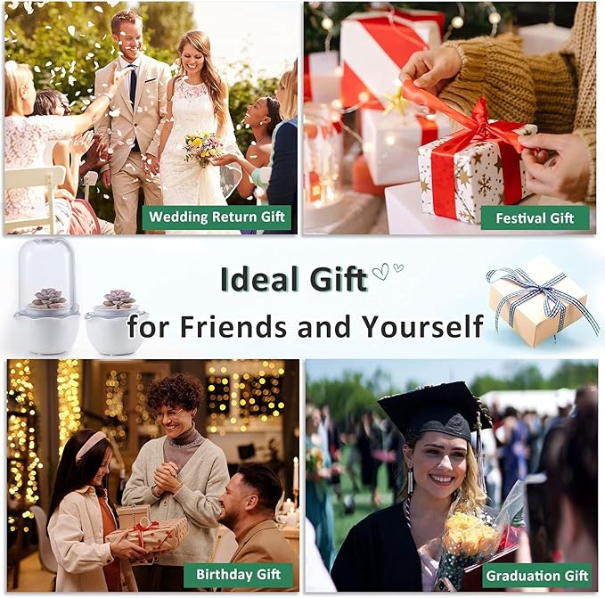 - 【Unique Gift Choice】Compact sleek design, High quality, beautiful box, nice gift for mothers day, A Unique Gift for wedding return, graduation, festivals, mothers day, fathers day and birthday!! Smart plant pot and easy to get the beautiful succulents, it's also a great gift for kids, grandma, grandpa, dad, mom, friends, and yourself!