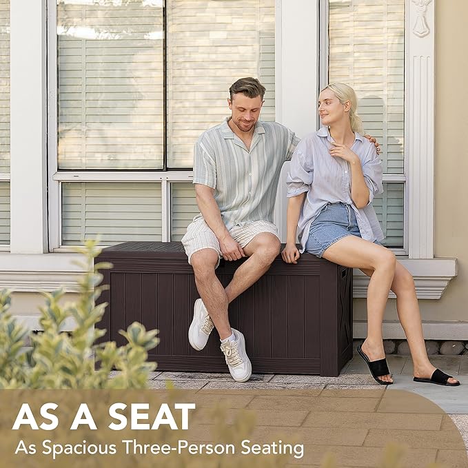 Devoko 120 Gallon Deck Box Resin Outdoor Storage Box Waterproof for Patio, Large Outdoor Storage Bench Lockable for Outside (Deep Brown)