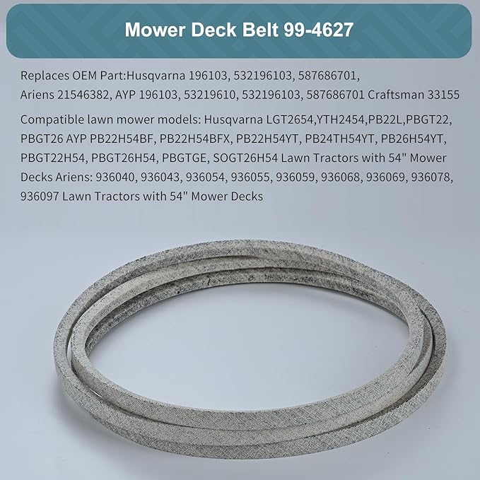 - Compatible for Husqvarna GTH2654 LGT2654 YTH2454, PB22L, PBGT22, PBGT26. AYP: PB22H54BF, PB22H54BFX, PB22H54YT, PB24TH54YT, PB26H54YT, PBGT22H54, PBGT26H54, PBGTGE, SOGT26H54 Lawn Tractors with 54" Mower Decks