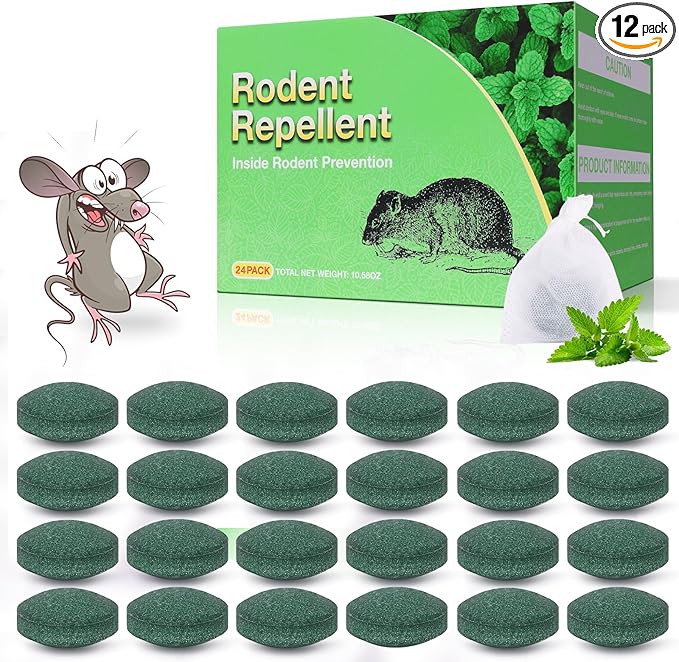 Mouse Repellent, 12 Pack Peppermint Oil Mouse Repellent for Car Engines, Indoor & Outdoor Use, Keep Mice Out of House and Garage, Safe for Pets and Family.