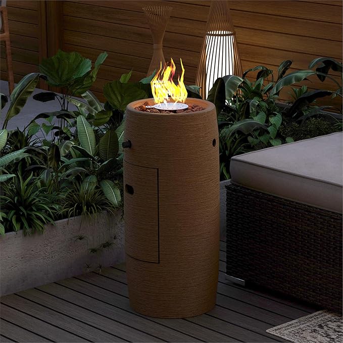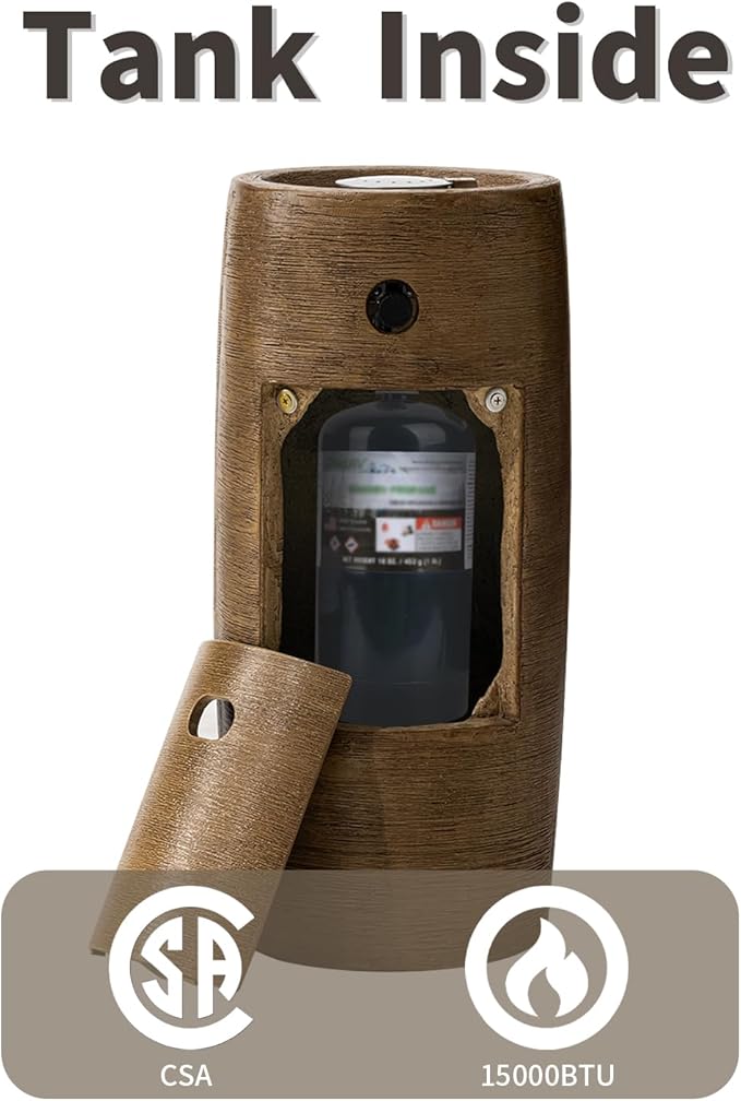 - [ Unique Craftsmanship & Design ] - The propane column is made of sturdy concrete, spraying magnesium oxide on surface to protect from cracking. The internal burner is made of stainless steel for a longer working and evenly heated.