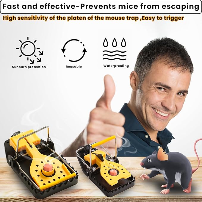 - 🐀【simple and easy to use】- Trampas para ratones are made of high-quality materials with a sturdy structure and excellent craftsmanship. The best mouse traps indoor for home or outdoor rat trap features a sensitive locking mechanism, simple squeeze mechanism and powerful spring. The rat trap is easy to set and deploy, the rat trap requires no special skills. mouse trap is simple to operate and the mice trap is ideal for placement in various locations.