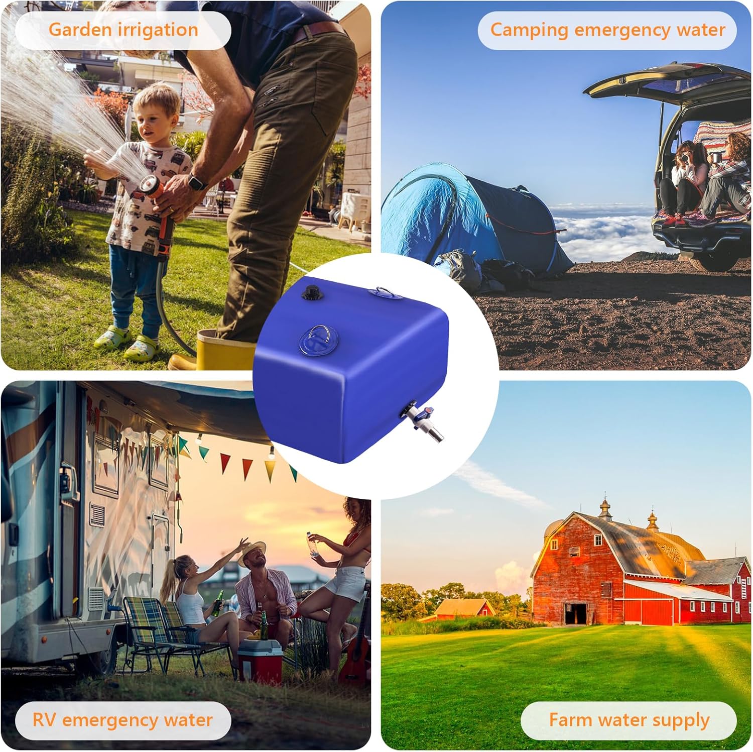 - POTABLE WATER STORAGE BLADDER: A portable water tank quickly fills with water using the bladder's 1.5-inch wide opening. Outlet valve 3/4 spout, stainless steel material is strong and durable. Portable water storage has a convenient outlet valve on/off switch for easy access to water and provides you with emergency water storage.