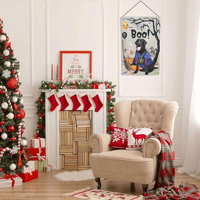 Labrador Black Dog Halloween Boo Pumpkin Garden Flag Welcome Party Outdoor Outside Decorations Picks Home House Garden Yard Decor 12x18 Inch