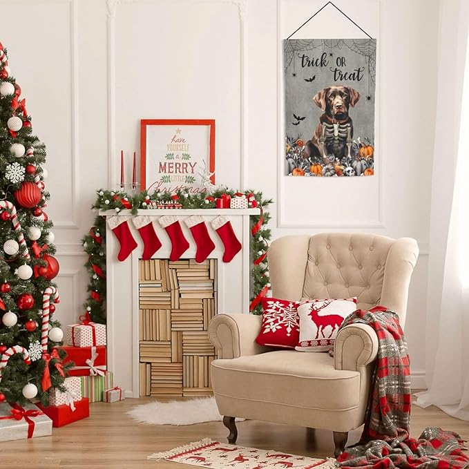 Halloween Labrador Chocolate Dog Bat Pumpkin Garden Flag Welcome Party Outdoor Outside Decorations Picks Home House Garden Yard Decor 12x18 Inch