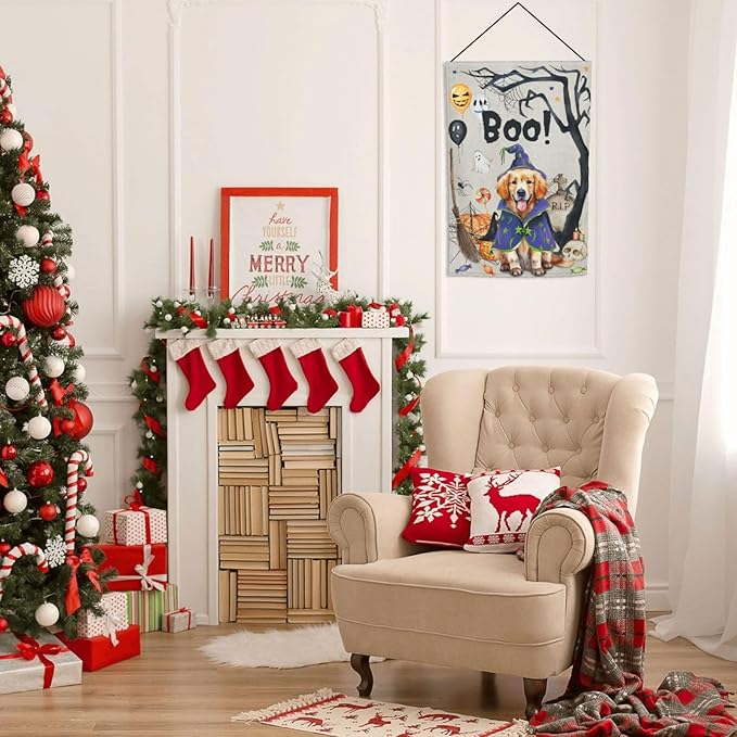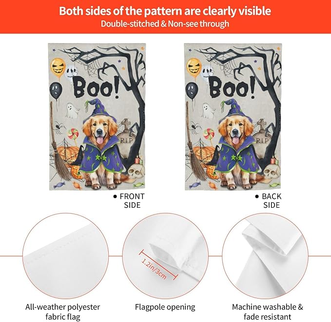 Golden Retriever Dog Halloween Boo Pumpkin Garden Flag Welcome Party Outdoor Outside Decorations Picks Home House Garden Yard Decor 12x18 Inch