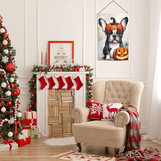 Halloween Boston Dog Pumpkin Garden Flag Welcome Party Outdoor Outside Decorations Picks Home House Garden Yard Decor 12x18 Inch