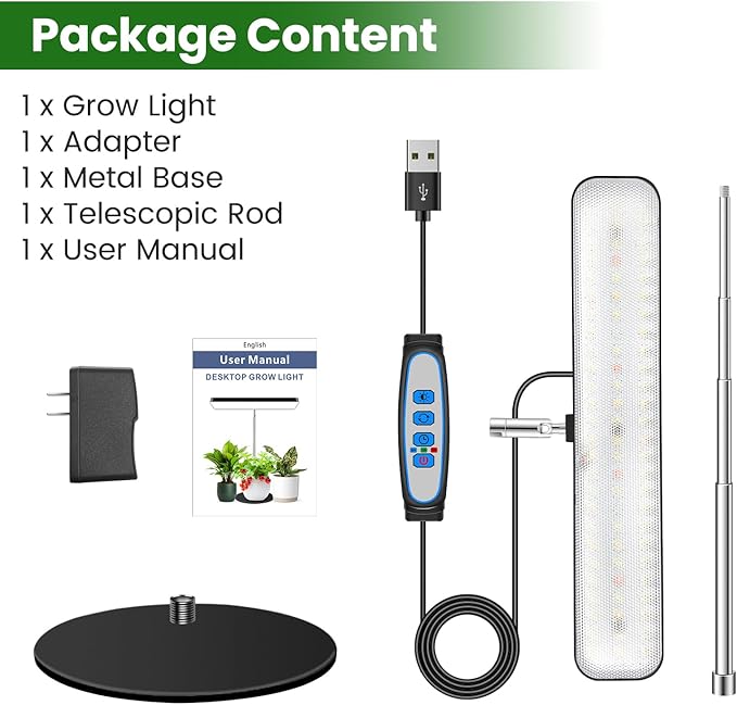 - Desk Plant Light: This indoor plant light supports height adjustment from 7.8 to 26 inches and angle adjustment, which can easily adapt to different sizes of plants; 5 inches metal base can maintain stability and does not take up valuable space, suitable for desktop use.