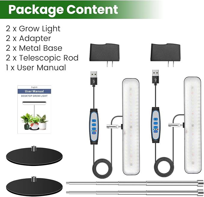 - Desk Plant Light: This indoor plant light supports height adjustment from 7.8 to 26 inches and angle adjustment, which can easily adapt to different sizes of plants; 5 inches metal base can maintain stability and does not take up valuable space, suitable for desktop use.