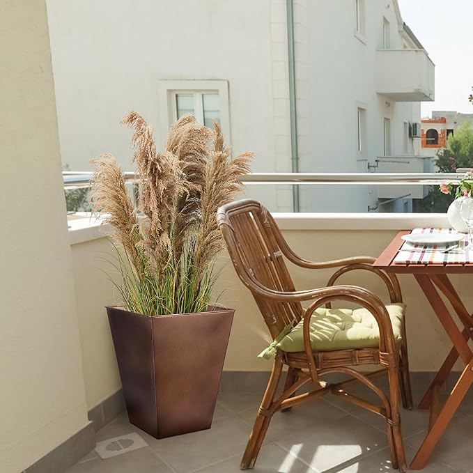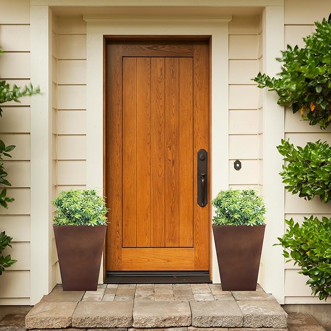 KOL 18''H. Metal Planter with Drainage Hole, Set of 2, Galvanized Steel Planter Pots for Indoor & Outdoor Use, Decorative Flower Plant Pots for Front Porch, Patio, Deck - Rust Color