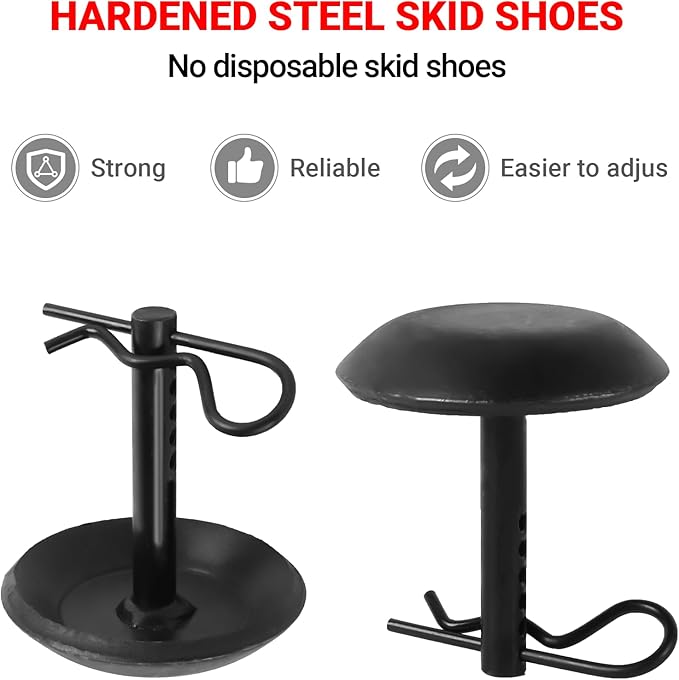- WITH QUICK-RELEASE COTTER PINS - Strong and reliable, these cotter pins make it easier to release and adjust the skid shoes lower or higher to the ground. They are also more robust and more reliable for a quick and hassle-free pin release.