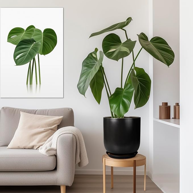 - Size of Black Planter: Each ceramic planter is 11.6β in outer diameter and 12β in height. The optimal size makes this ceramic plant pot an ideal home for planting monstera, money tree, ficus lyrata, olive tree, bonsai
