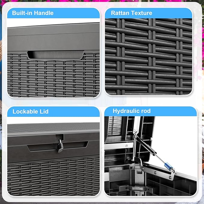 - Simple Assembly: The deck box use convenience design with all assembly components and instructions included in one box. One person can easily assemble it, making setup straightforward and hassle-free.