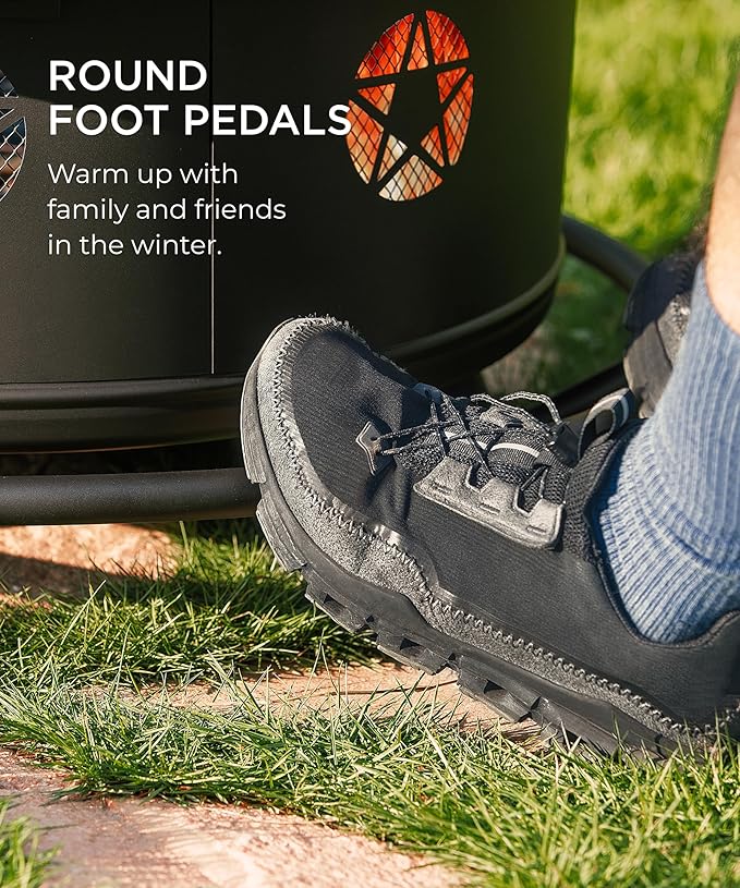 - 【SAFETY & DURABLE】A SUNOUTLY wood-burning fire pit can accommodate up to 40 pounds of wood, provide a roaring fire, and adequate warmth. A firepit with four legs and sufficient weight can provide stability on uneven terrain. In addition four legs, the bottom of the fire pit also has a circle of fire ring, which serves to enhance the stability of the fire pit and can keep people at a safe distance from flames.