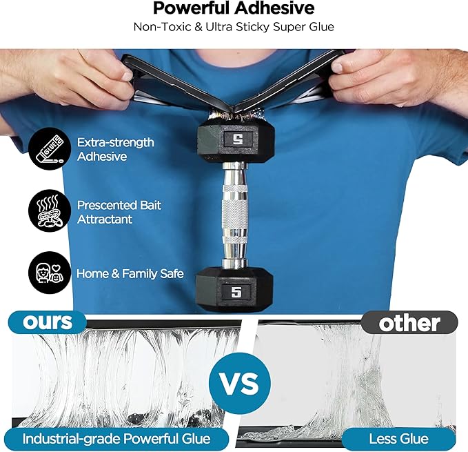 - Non-toxic Super Glue Traps: Utilizing non-toxic super glue, these sticky mouse traps for mice are safe for both children and pets. They are safe for use inside your house. Our mouse traps use super glue that can withstand the cold weather. Once the mouse or insect is stuck, it can no longer break free.