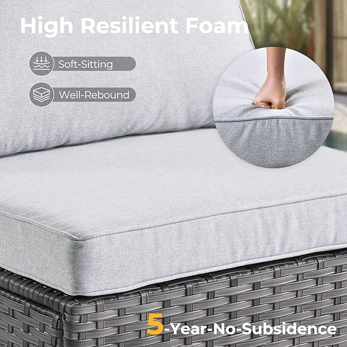 - Comfortable Seating: The seat cushions paded with 3.5 inch thicken and high resilient foam for comfortable sitting experience and keeping it not-easy deformed. Thicken back cushion for soft cozy backrest as well as well spine supporting