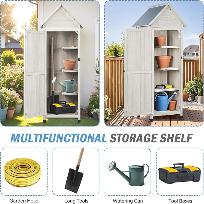 - Weatherproof Roof: Designed with a durable galvanized steel roof, this outdoor storage cabinet provides superior waterproof protection to keep your tools dry in rain, snow, and harsh weather. Perfect for gardens, patios, porches, backyards, and other outdoor spaces.