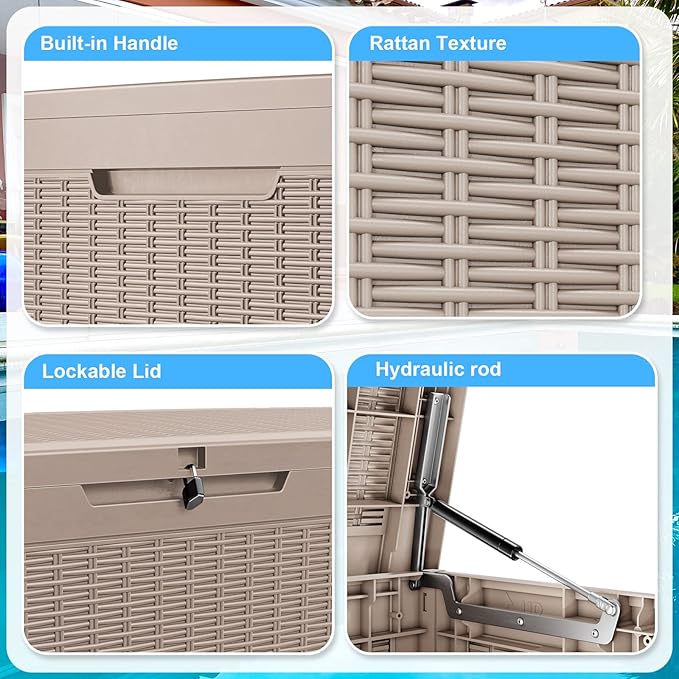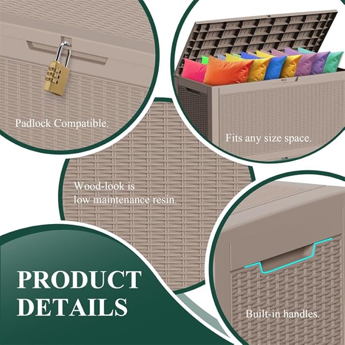 - All-Weather Outdoor Storage Box : UV-resistant resin laughs off sun, rain, and snow without fading or cracking. Perfect for patio cushions, gardening tools, – keeps everything dry and organized season after season.