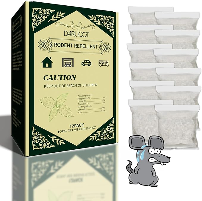Extra-Strength Mouse Repellent Pouches, Cinnamon/Peppermint Oils Repel Mice from Nesting & Freshen Air in Car/RV/Boat/Garage/Shed/Cabin