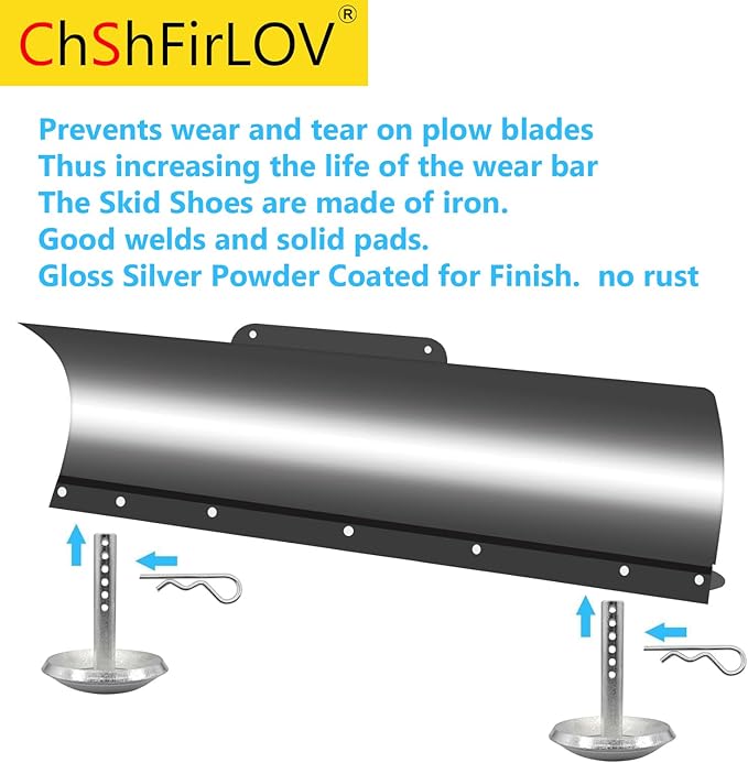 69212 2/Pack Skid Shoes for Snow Plow Blade Protector 5/8 inch Round Shaft and Adjustable Pin Placement Lock Rather Thick Hardened Steel Snow Plow Non-Slip Base - with Quick-Release Cotter Pins