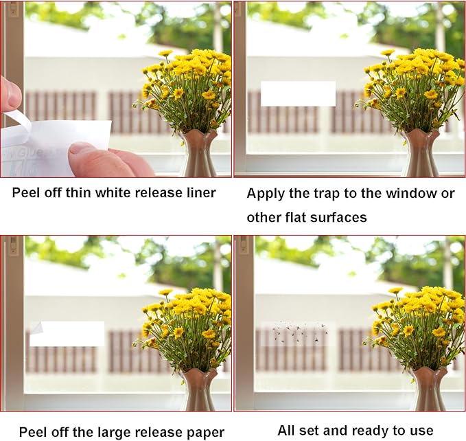 - EFFECTIVE AND CONVENIENT FLY CONTROL: Our fly traps for clear windows are a reliable solution for flying insect problems. These waterproof, easy-to-apply, and disposable traps are non-toxic, ensuring the safety of your environment. Simply peel off the thin white lining, apply the fly trap for indoors to your window, and let it do the work. Rigorously tested under harsh field conditions, these traps offer maximum reliability for pest control experts.