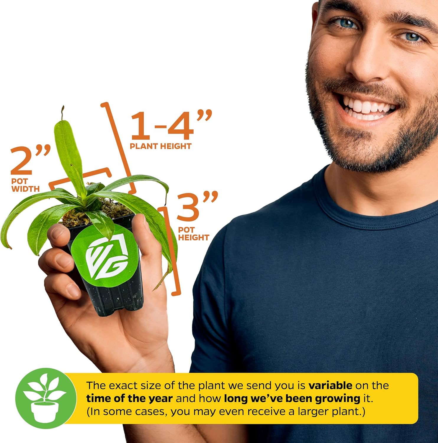 - SIZE UPON ARRIVAL: Your live Lady Luck Carnivorous Pitcher Plant will arrive in a small 3-inch-deep pot, standing 3-8 inches tall. This size is perfect for acclimating the plant to its new home. The pot holds 4.90 fl oz (145.0 mL) of soil, allowing the plant to continue growing in a controlled environment until it's ready to be transplanted.