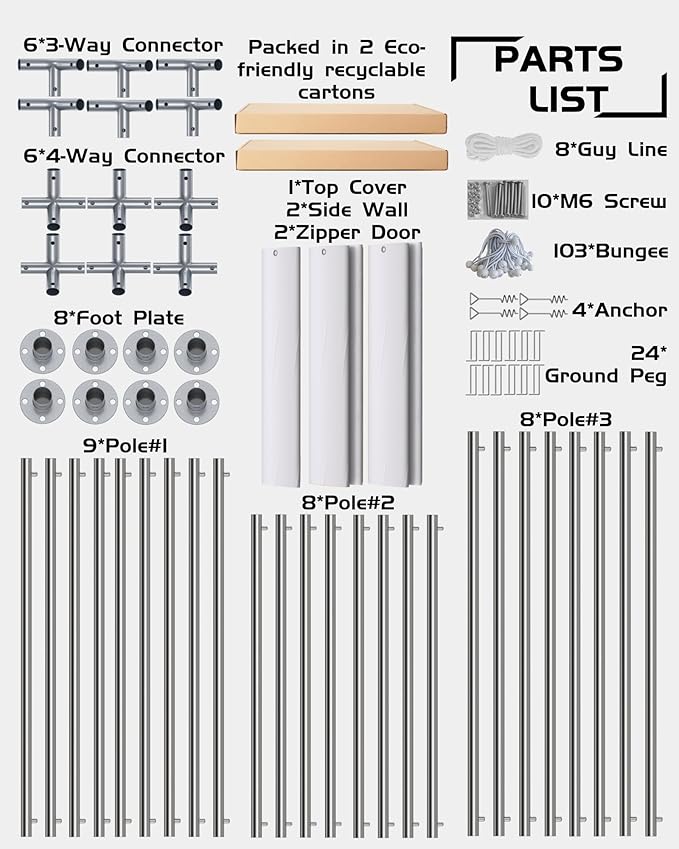 - 【Product Dimensions】Length x Width x Height - 20' x 10' x 11', suitable for parking pickups, boats, sedans, and SUVs, and can also be used as an outdoor storage shed.