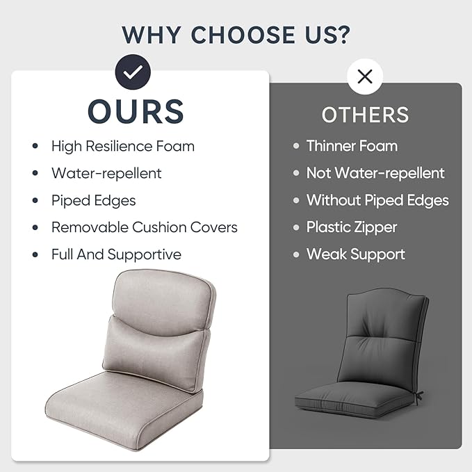 - COMFORTABLE BUT FIRM: These cushions are customized for outdoor patio furniture chairs and sofa set, so they're not as soft as indoor pillows yet more long-lasting and practical