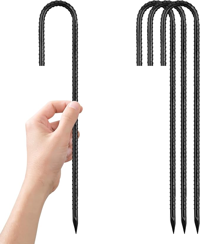 - 【High Quality】: Our J-shaped rebar stakes are made of high-quality rebar and coated with corrosion-resistant black coated. They are rust-proof, and withstand harsh weather without bending, offering a cost-effective alternative to traditional stakes.